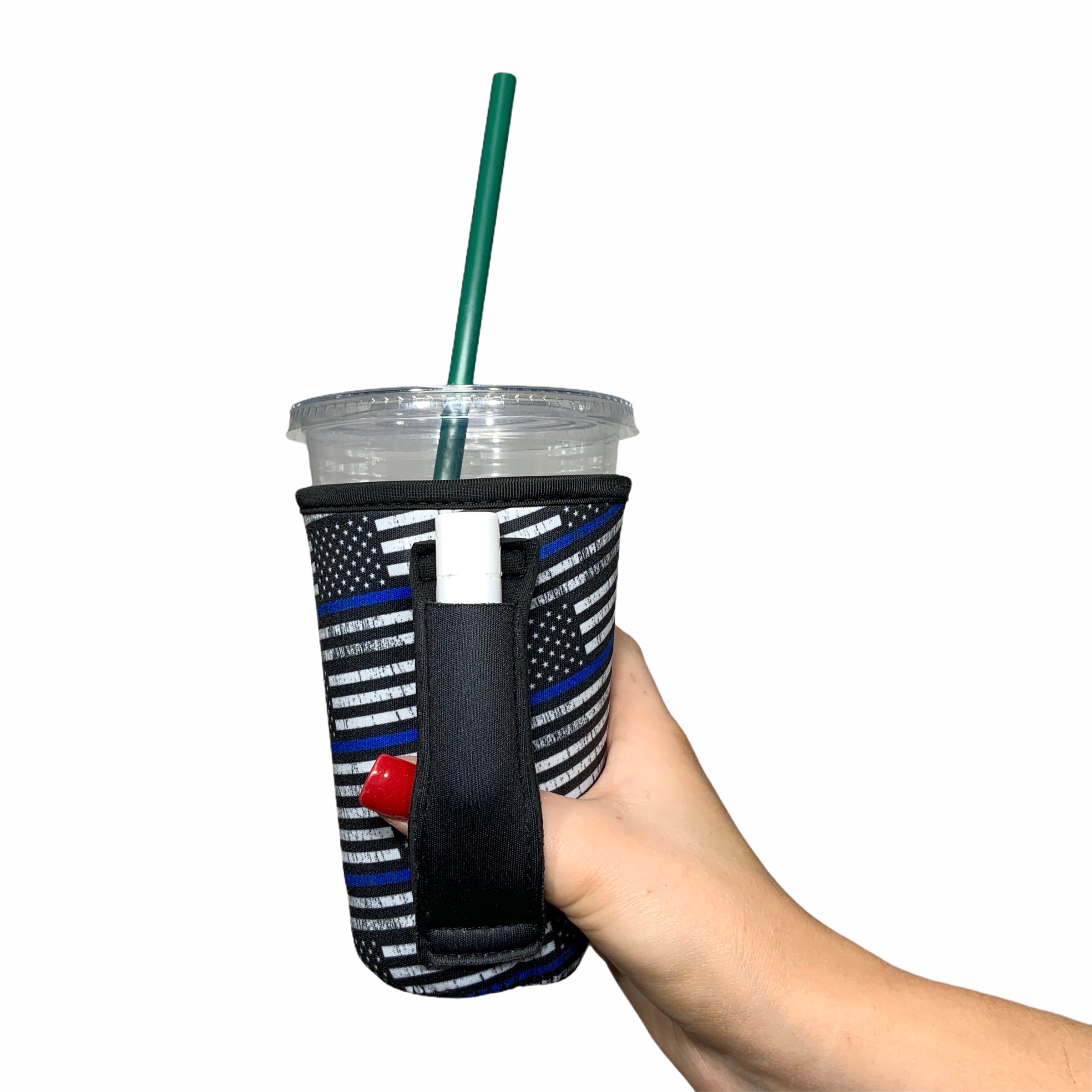 These patent pending Handlers™ are a little different than your average insulating sleeve. They have an easy to grip handle built right into the sleeve to help redistribute the weight. There is also an awesome pocket inside the reinforced handle to help keep your small essentials at bay. Easily slide your lip balm or other small essentials inside. These Handlers™ will help keep your drink cold/hot, your hands dry and you won't have to ask someone to "hold your drink" again!