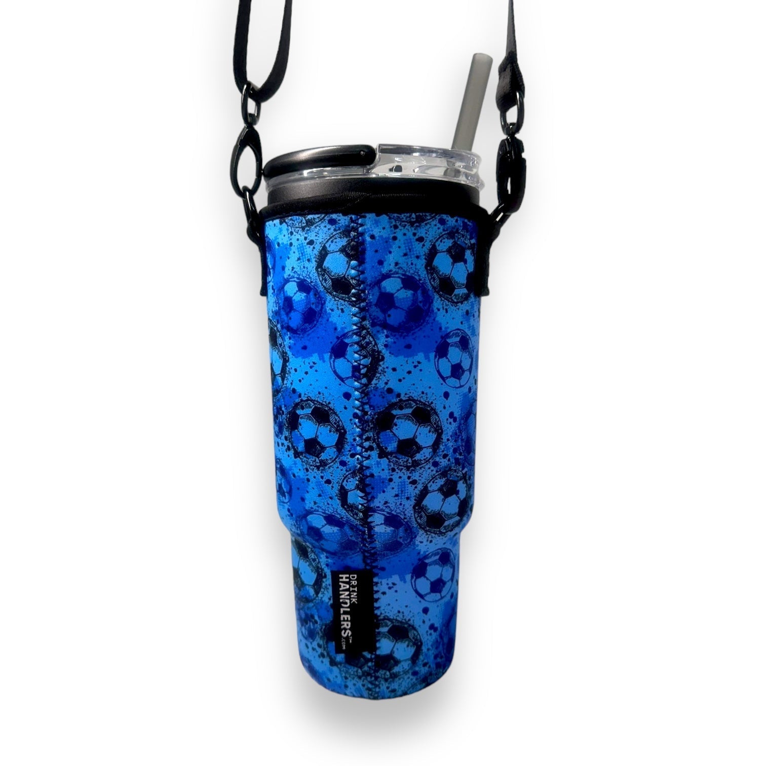 Blue Soccer 40oz Tumbler With Handle Sleeve