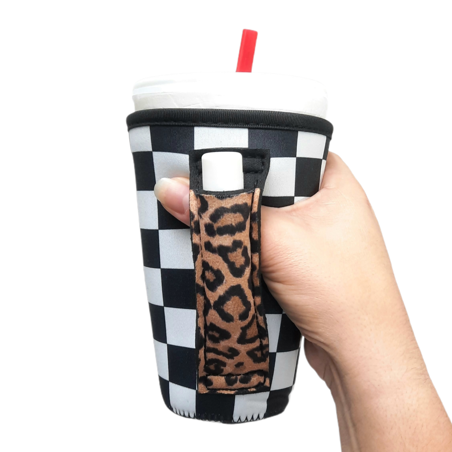 Checkerboard w/ Leopard 16oz PINT Glass / Medium Fountain Drinks and Tumbler Handlers™