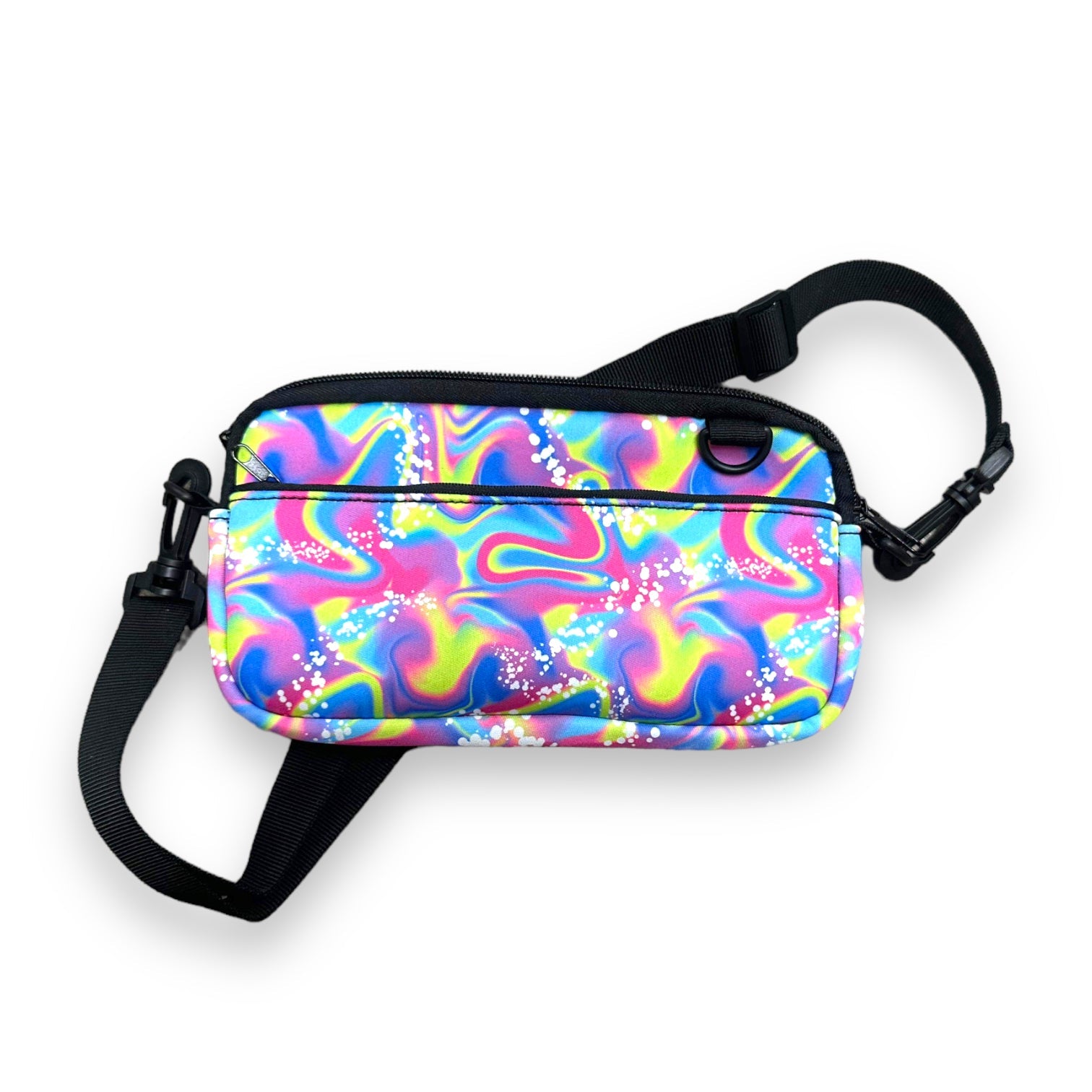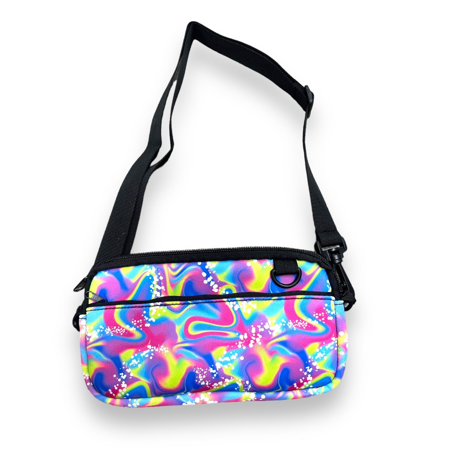 The Cross Body Purse is a stylish and reliable accessory. It is made of 3mm Neoprene and measures 9x5.5 inches.