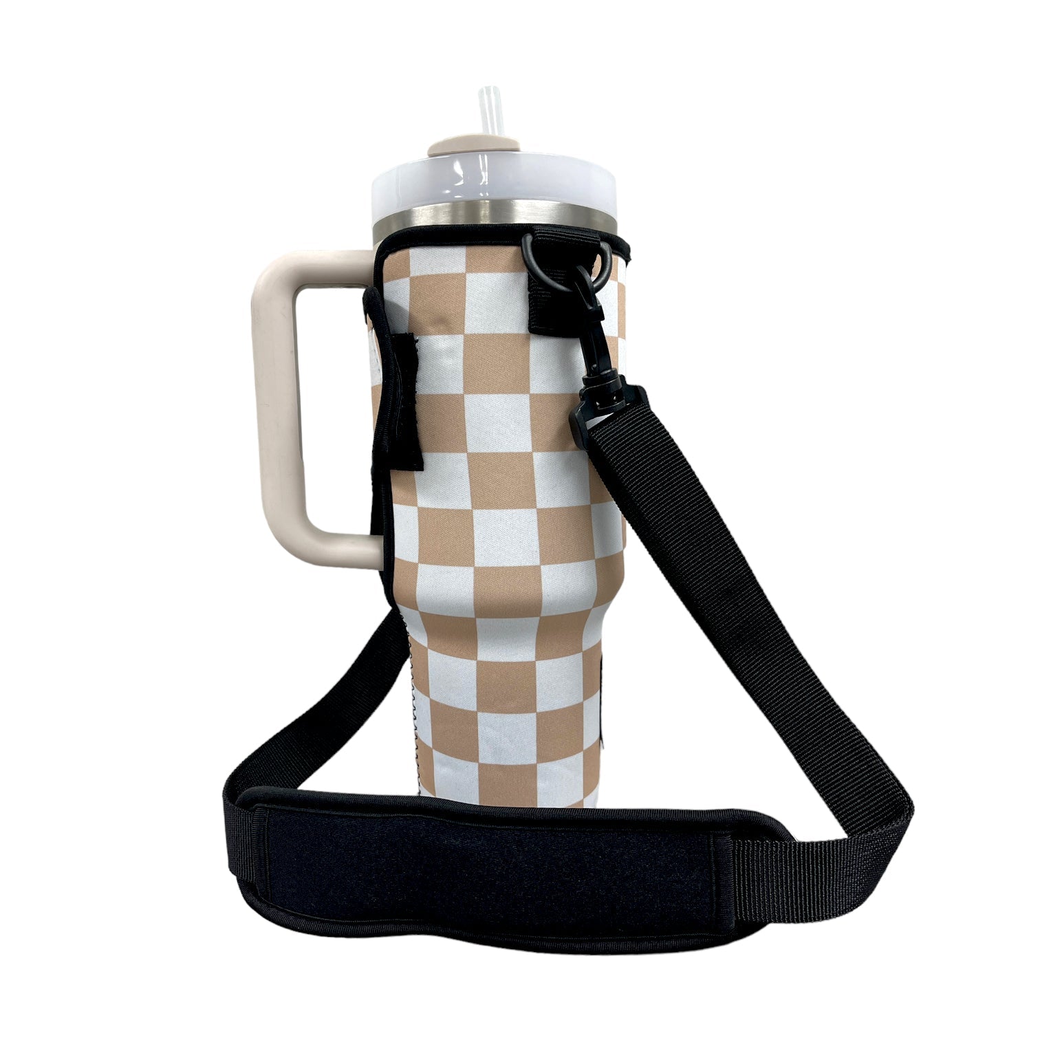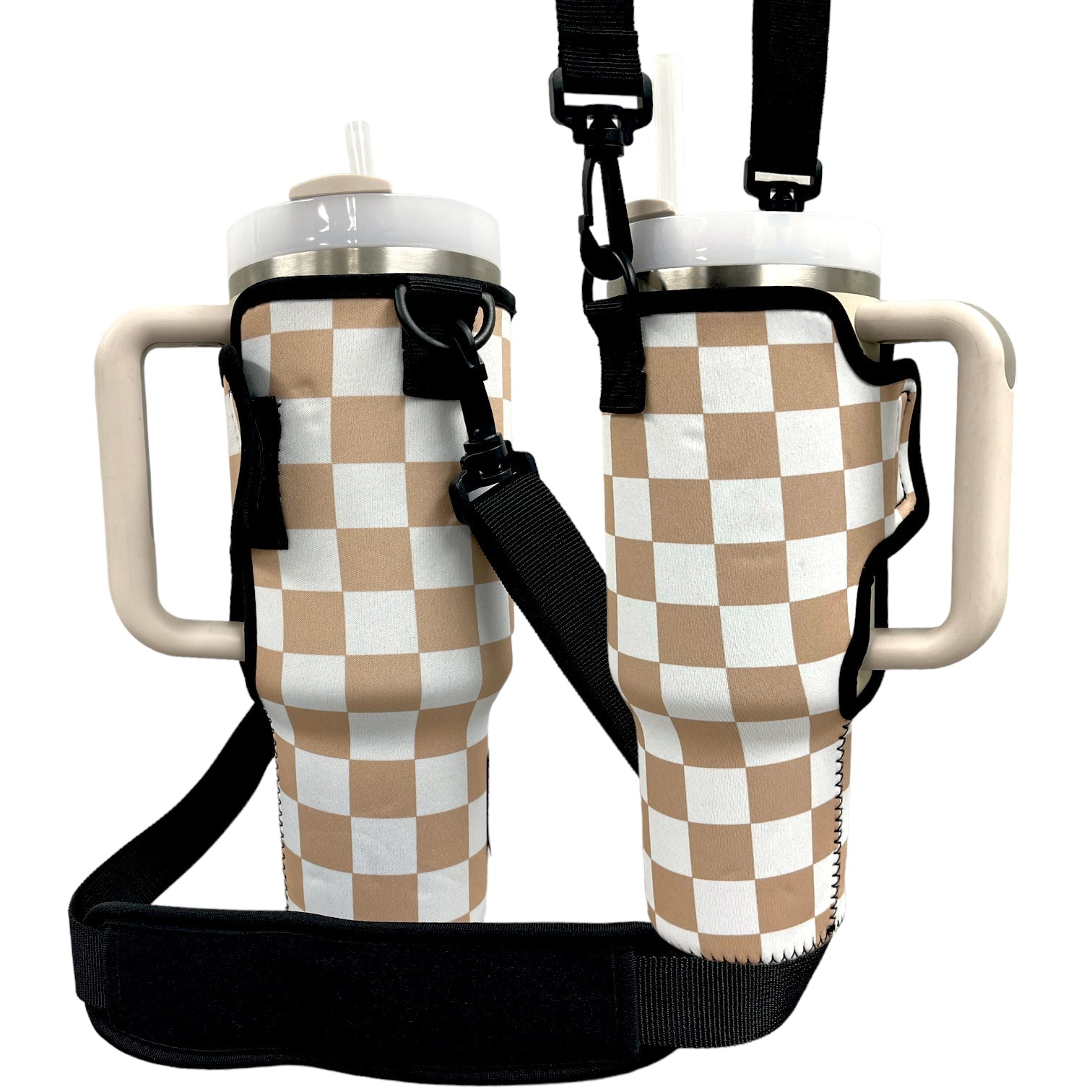Tan Checkers 40oz Tumbler With Handle Sleeve