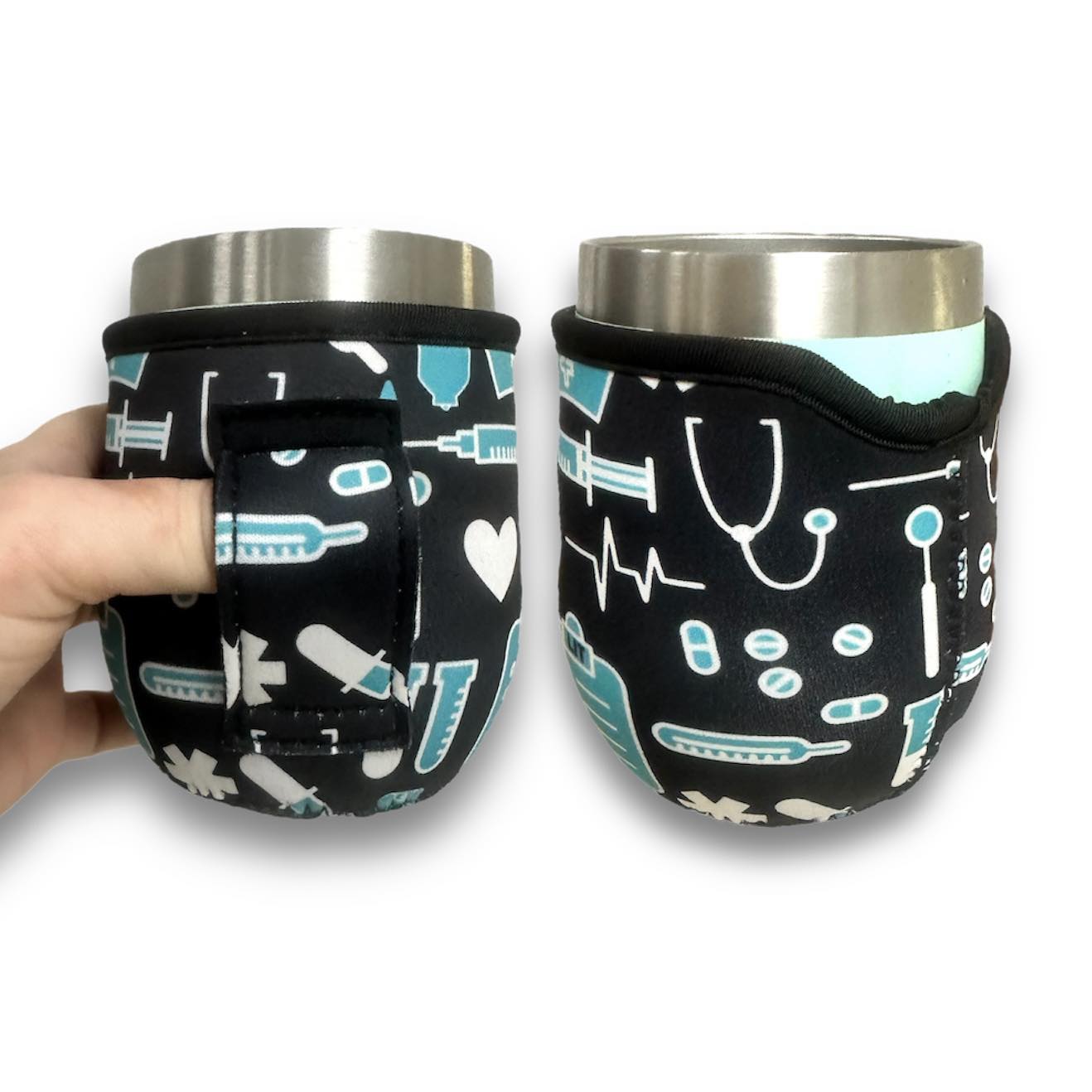 Not only are these super cute, they are amazing quality, water resistant, and machine washable—perfect for everyday sips, patio lounging, tailgates, and on-the-go adventures. The flexible, easy-on sleeve helps reduce slips and condensation while keeping hands dry, and it even helps little ones hold onto their drinks!